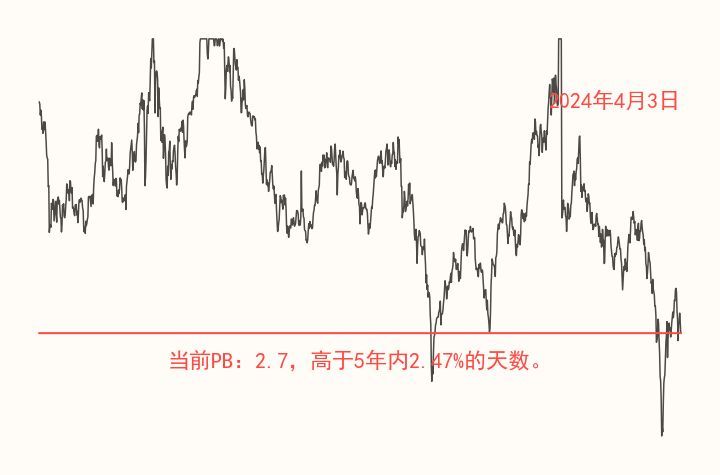 人工智能概念当前PB:2.7,高于5年内2.47%的天数。