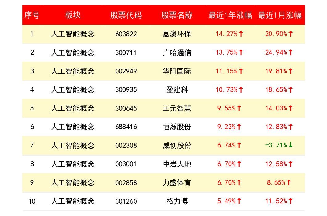 人工智能概念共有518只个股,哪些股票的概念更纯正?哪些股票过去1个月的股价强度最高?