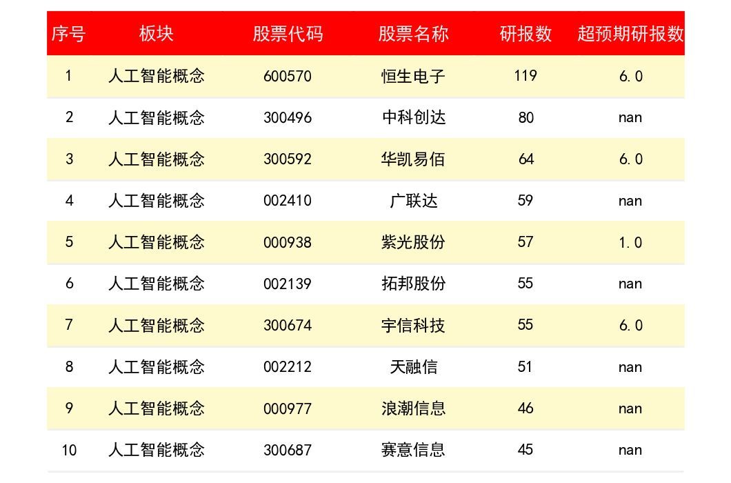 从专业机构研报数维度来看,人工智能概念上市公司龙头股有哪些?专业机构研报数排名如何?