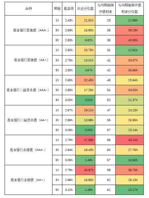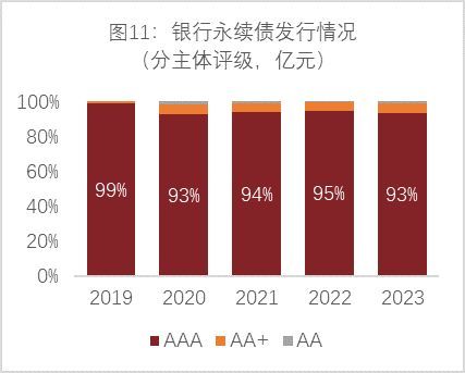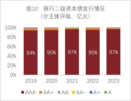 从主体评级看,供给仍集中在高评级银行,AAA级银行在银行二永债的发行规模占比均高达90%以上。