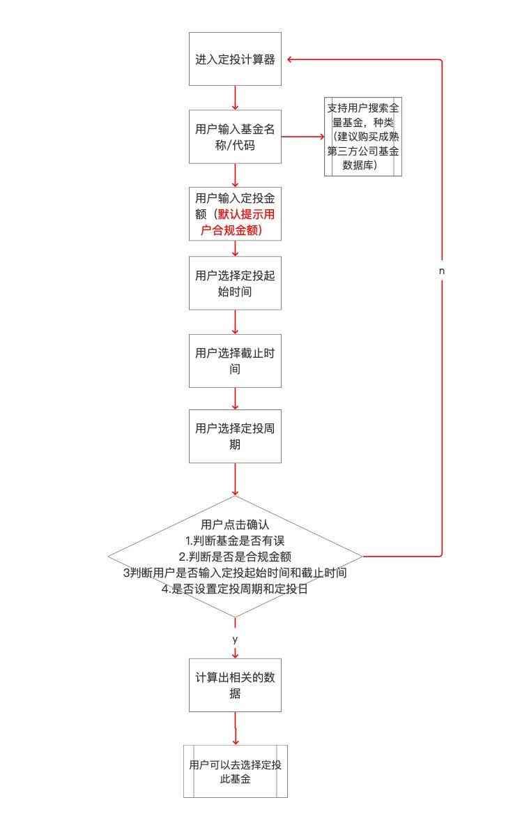 只提供本基金公司产品数据,限制了用户的搜索的范围;只提供普通定投策略,策略单一,无法满足多层次用户的需求;从两款定投计算器的功能设置,及业务流程分析,最后可以得出结论: