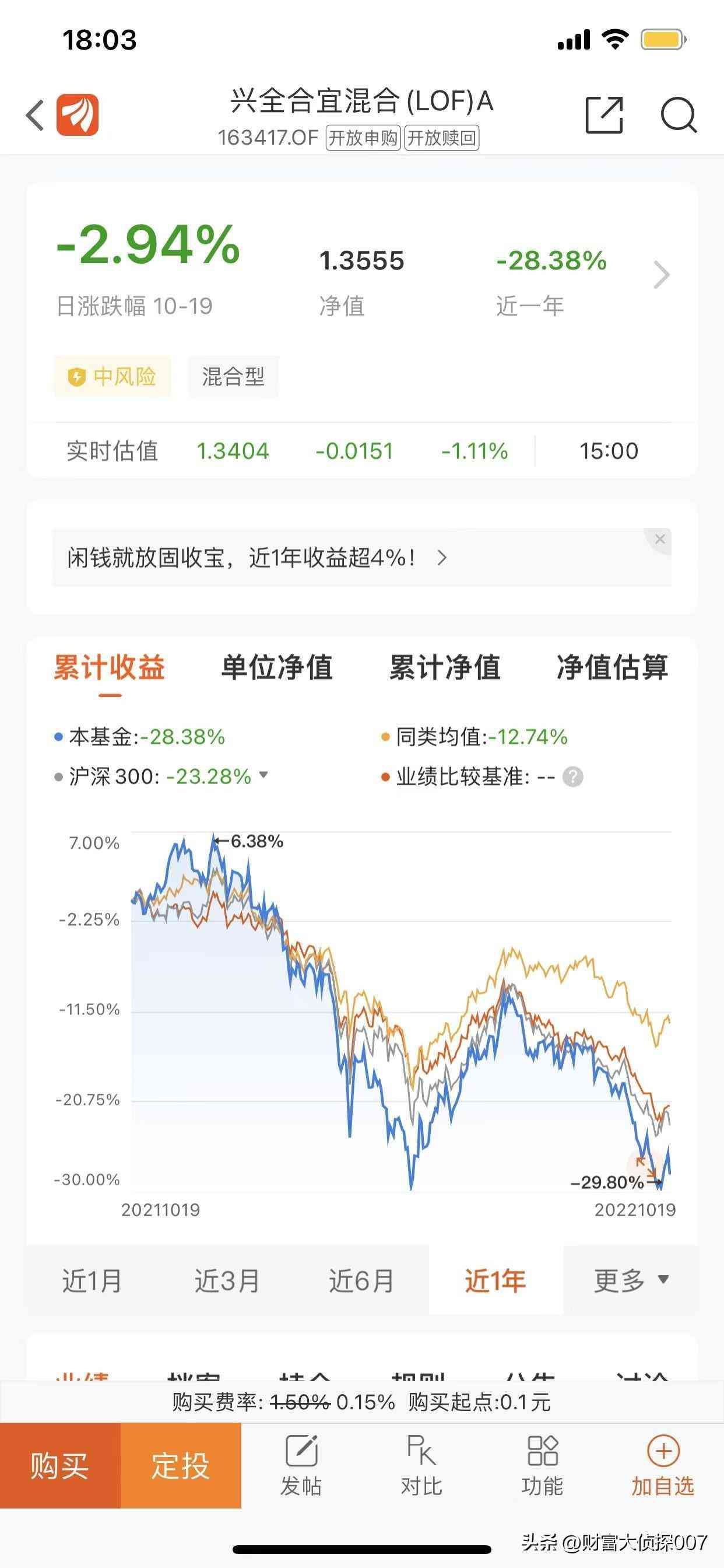 今天我们来分享下一支产品——兴全合宜A(163417),这只基金也算是兴证全球的拳头产品了,关键是这只基金是2018年初成立的,经过了一轮牛熊了,目前也只收益了35%出头,快5年了吧!5年来翻倍基金真的不少了,这样的业绩真的,非常一般了!关键是这将近5年的牛熊转换里,有消费、有医疗、有科技的行情轮番上阵,基金经理谢治宇真的一点都没抓住吗?!