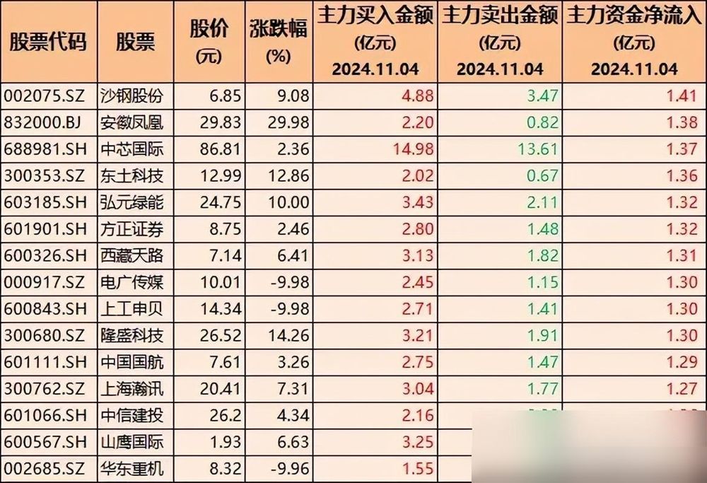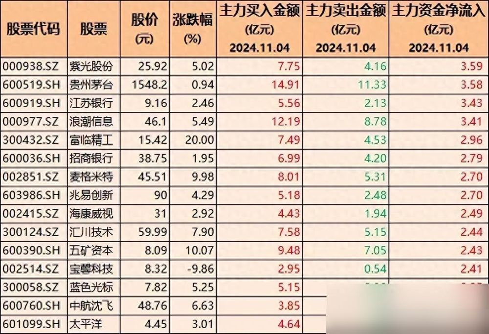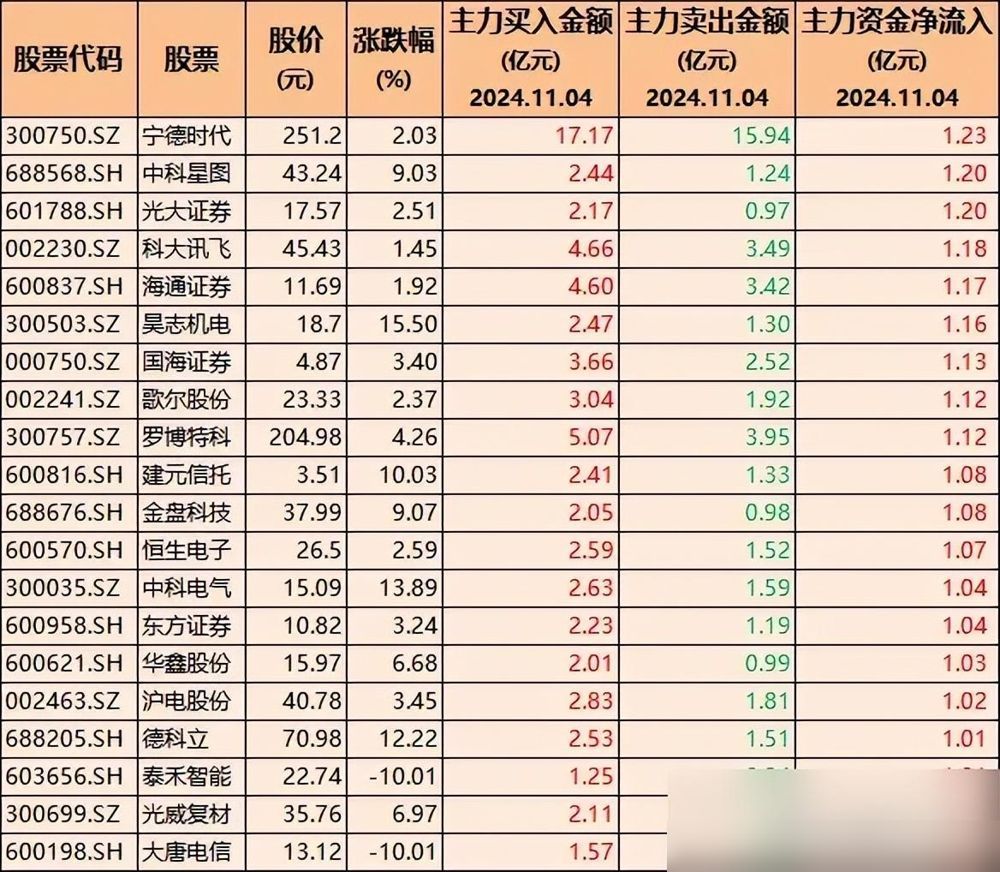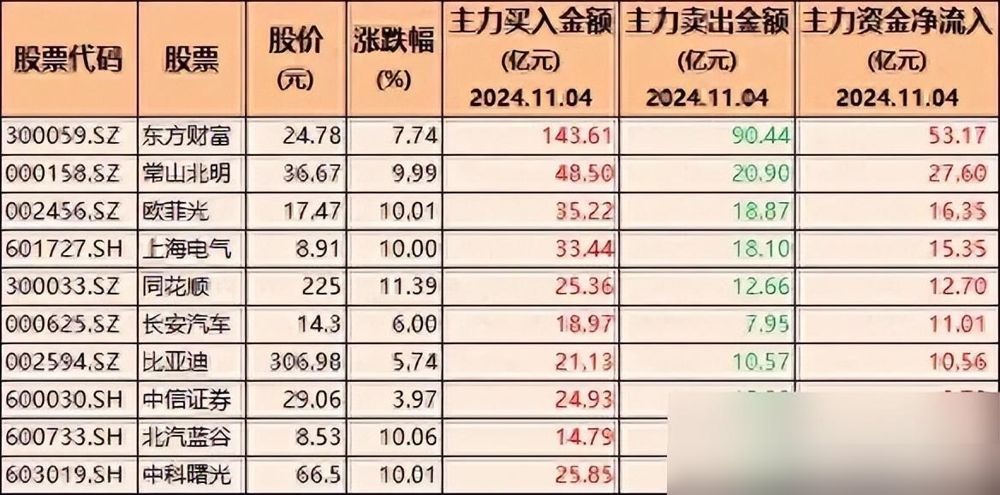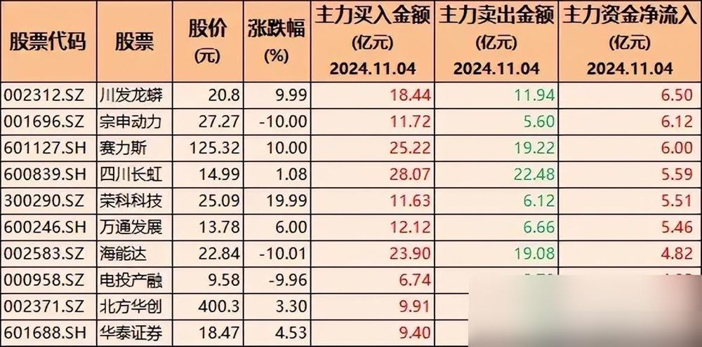 15只股票主力净买入超10亿的个股,