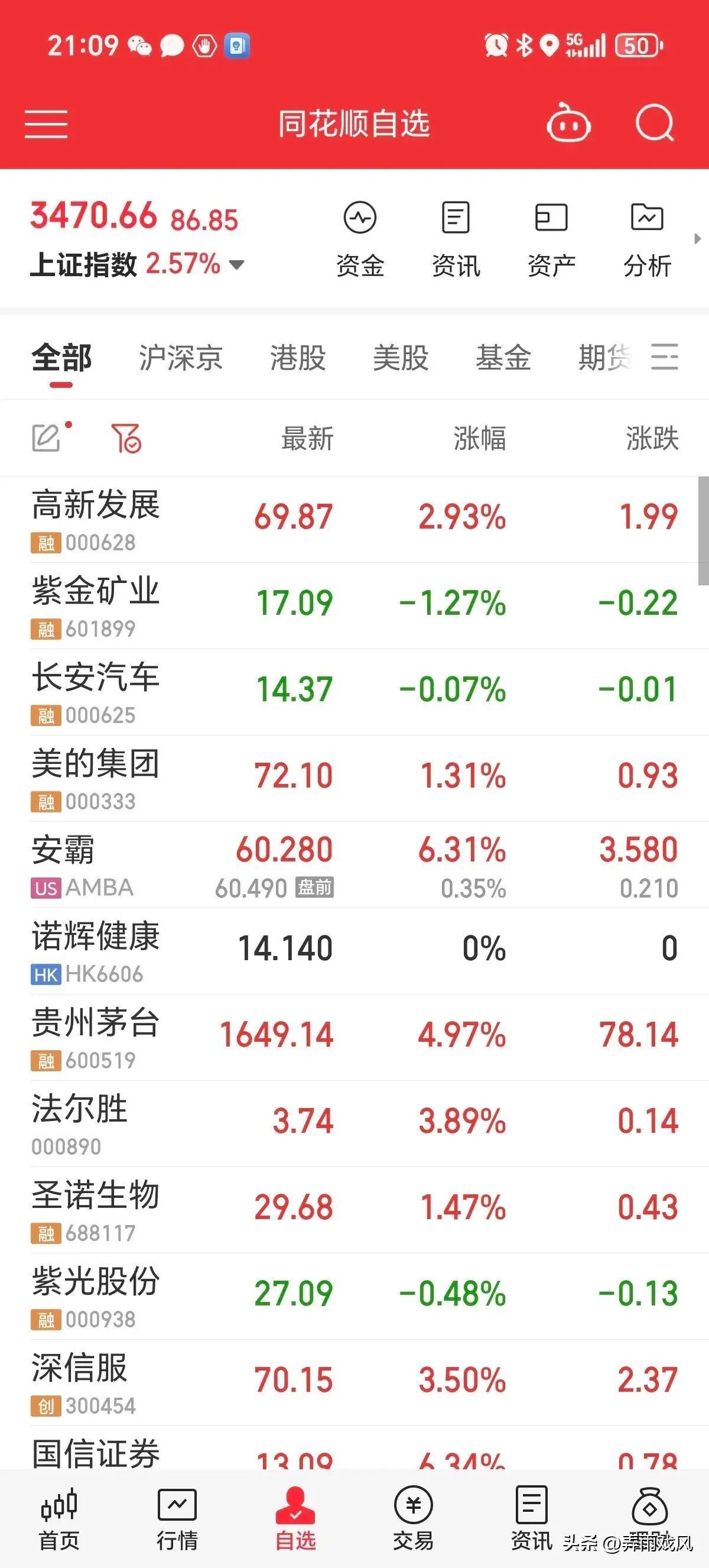 这时候你可以选择搜索一些你感兴趣的股票,添加到自选列表,这样你就随时看到你的选择的股票的变化