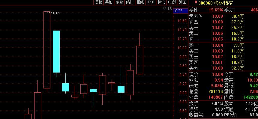 格林精密:20厘米涨停,但是没有出现高开缺口,所以在提示格林精密的时候重点强调他会走的比较墨迹。目前来看,震荡了两天然后连续大幅拉升。如果他出现高开缺口可能就不会这么墨迹了,会直接提示上车。