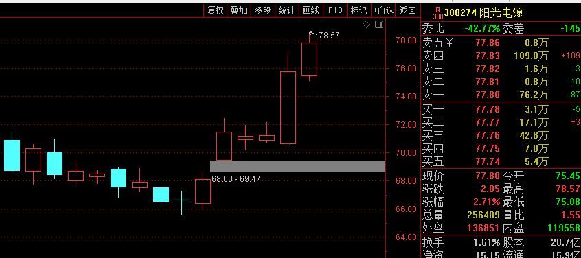 阳光电源:权重+缺口,长得概率也是99%。很少有权重股出现缺口还大跌的。