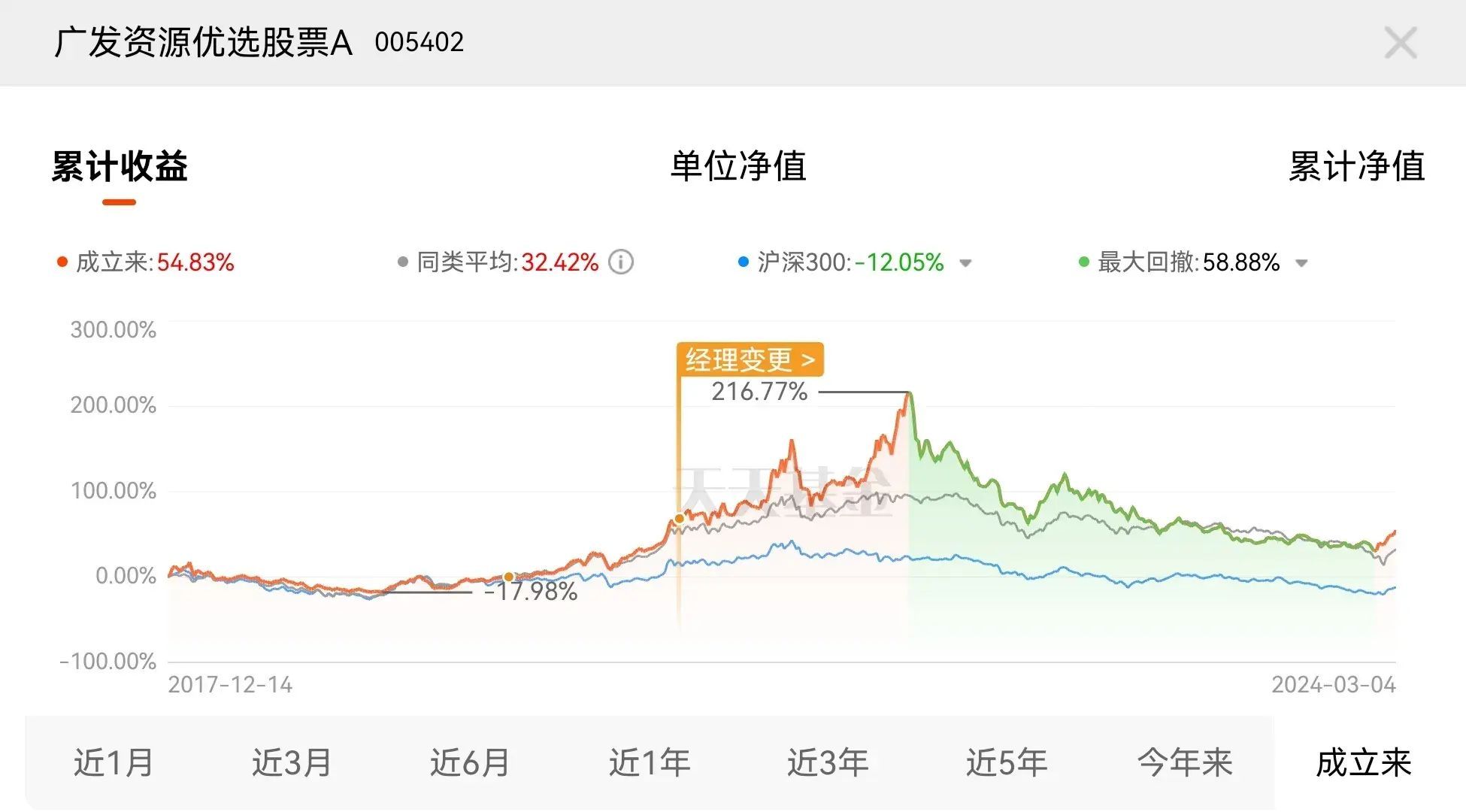 但要注意,那么基金现在的最大回回撤期间基金经理没有换人,这个对比才最有效果;如果基金下跌途中换了人,那么这个“业绩”就不是他的了。