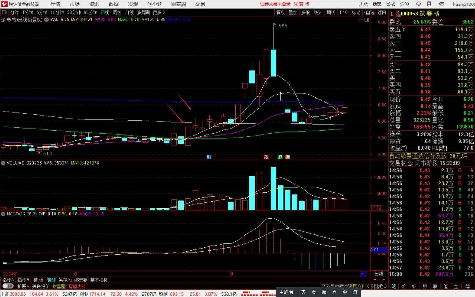 深赛格深赛格8月23日首板涨停,次日走出放量上下影线的小阳线,随后横盘,9月2日走出缩倍量的小阴线,9月3日涨停即是买入点,后面走出1波不错的涨幅。