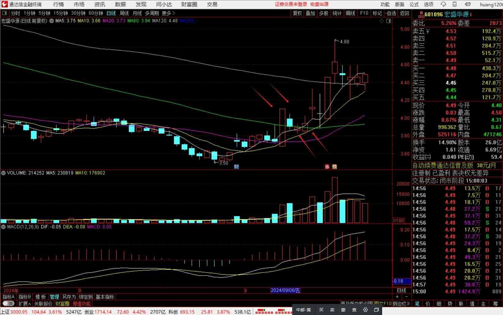 宏盛华源宏盛华源9月9日首板涨停,次日低开走出放量阴线,9月11日缩倍量假阳真阴,9月12日放量上涨即是买入点,后面走出连续上涨。