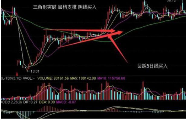 四、三角形突破,回档支撑,阴线买入