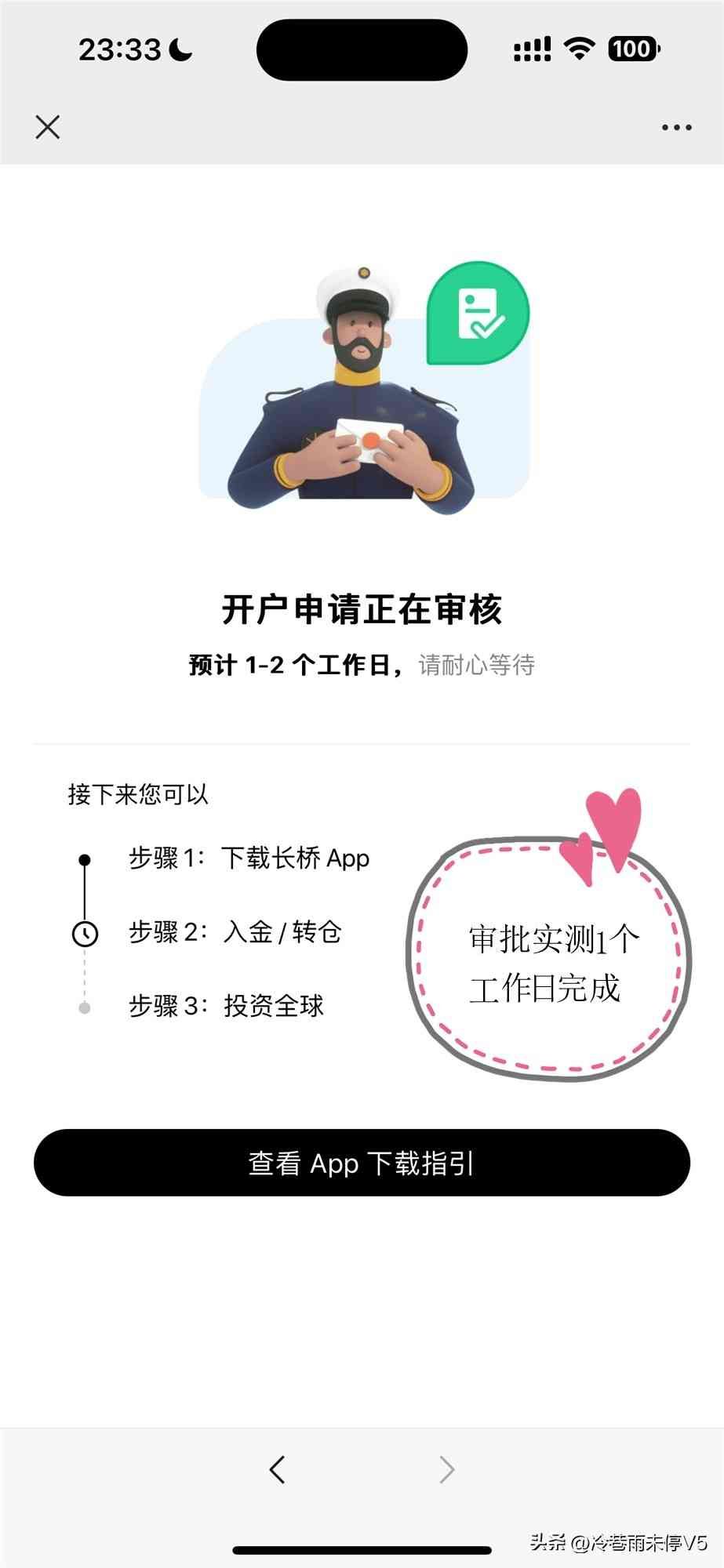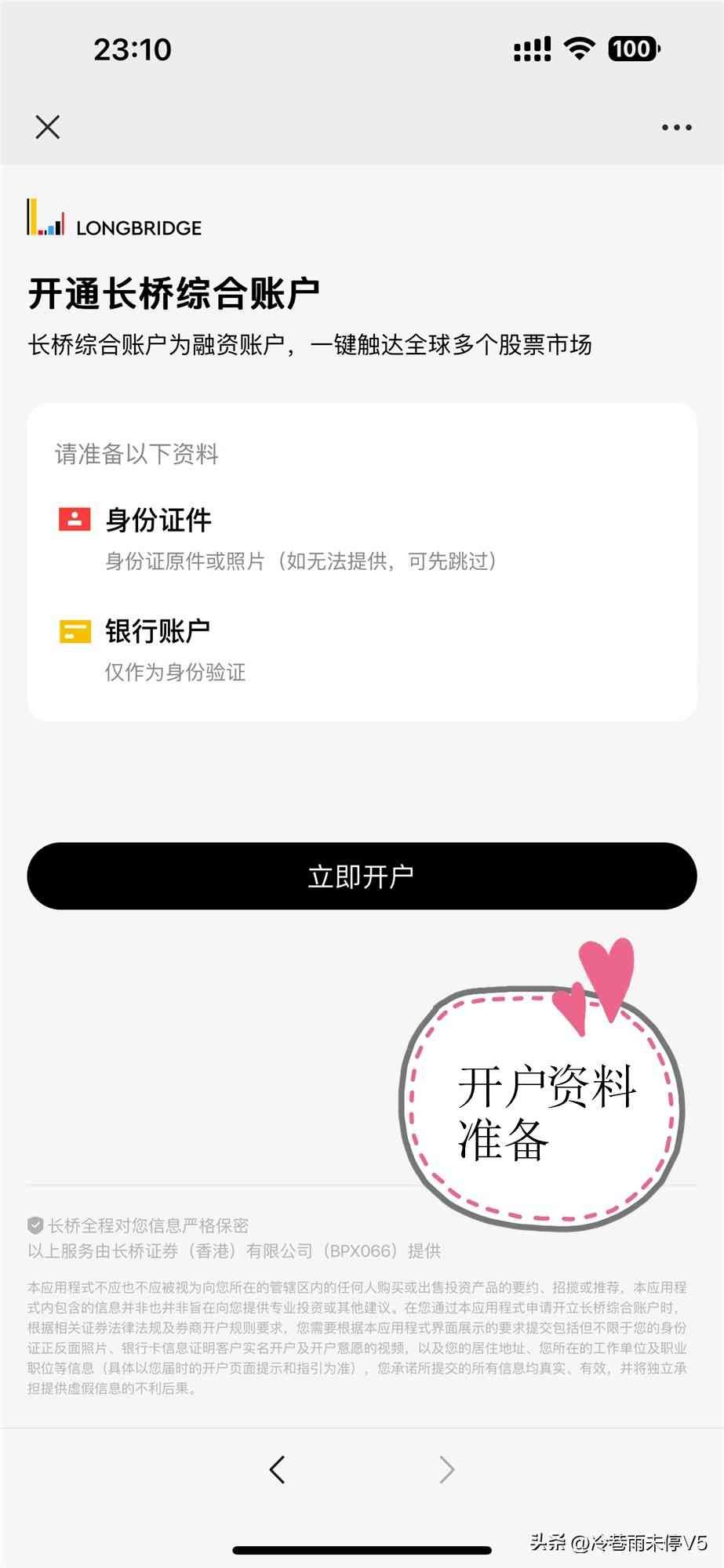准备好长桥APP,点击立即开户(小小请求:邀请码可以填5ULRXG,或者点击邀请链接开户:长桥新人礼)上传身份证填写职业与评估问卷完成身份认证并签名等待审核绑定银行卡入金详细过程: