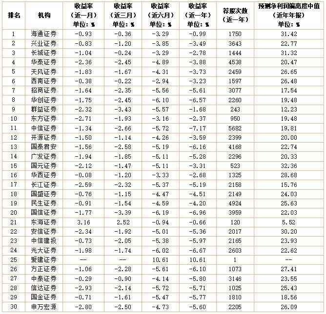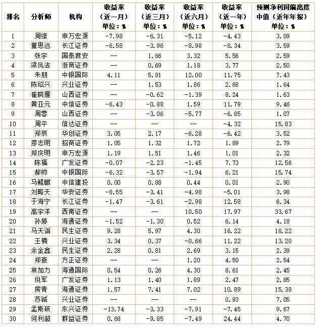 分析师实力榜前30名