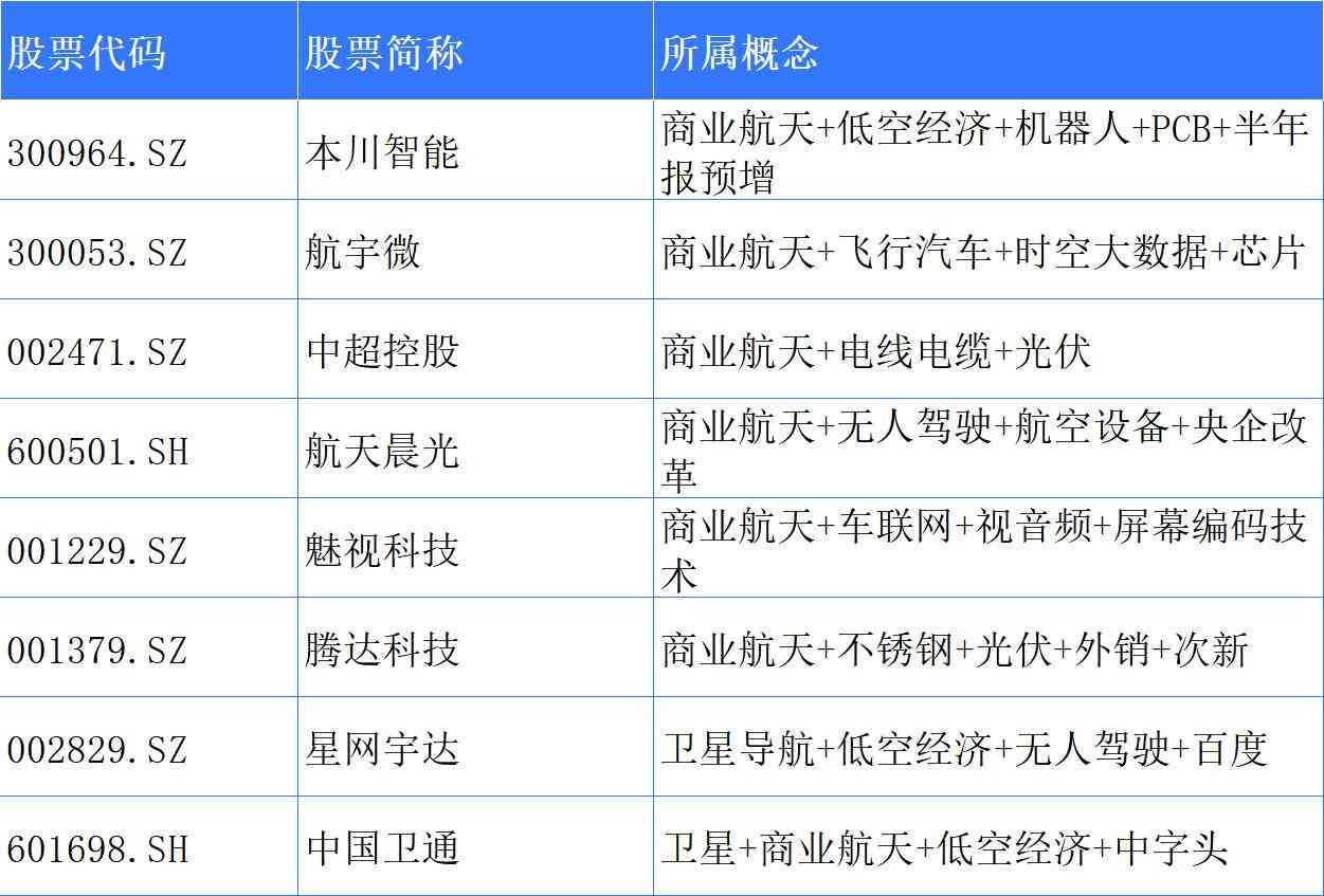 低空经济、商业航空、合成生物是写入报告的三件事,概念级别高,商业航天龙头公司有以下6家。