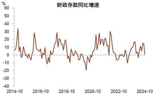 分析本月货币供应的一个核心现象是存款增速下跌但M2增速上升。10月人民币存款增速从9月的7.1%下跌到7.0%,但是M2增速却从6.8%回升到7.5%。也就是说,一部分非M2的存款转化成了M2。人民币存款和M2之间的差距主要有两项。第一是财政存款,这个相对容易理解,即财政账户存放在国库的资金,不计入M2。另一项是非财政部门持有的、不计入M2的存款,这部分主要是可转让存款等其他条款相对复杂的存款、以及存放在境外的人民币存款等。