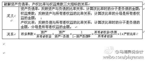 资产负债率、产权比率与权益乘数三大指标之间的关系。