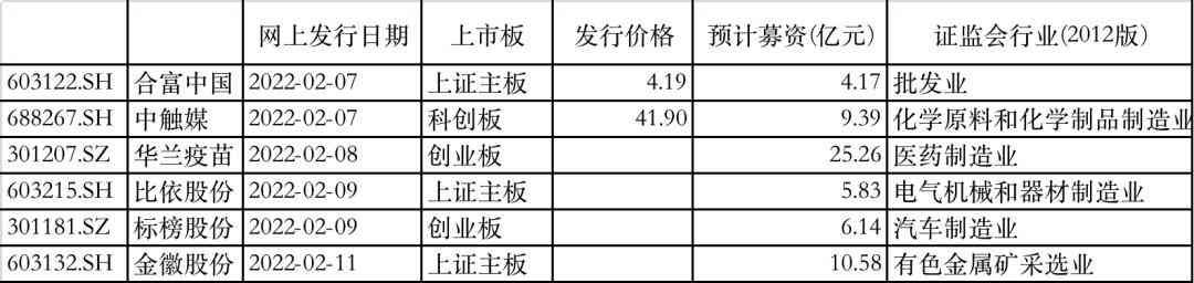 据目前安排,若无变化,(2月7日到11日)有6只新股启动网上申购,包括科创板1只、创业板2只、上证主板3只。