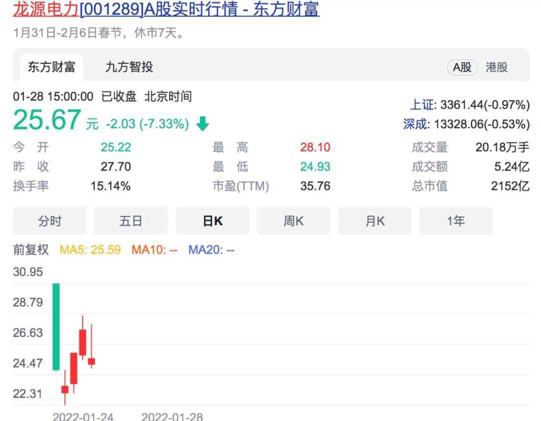 龙源电力上市首日其股价跌破开盘价,首日股价收于24.79元,相较开盘价30.95元下跌22.87%,龙源电力是全球最大风电运营企业,不同于此前华电福新等新能源企业从港股私有化退市的流程,龙源电力通过换股吸收合并的方式实现了“A+H”两地上市。