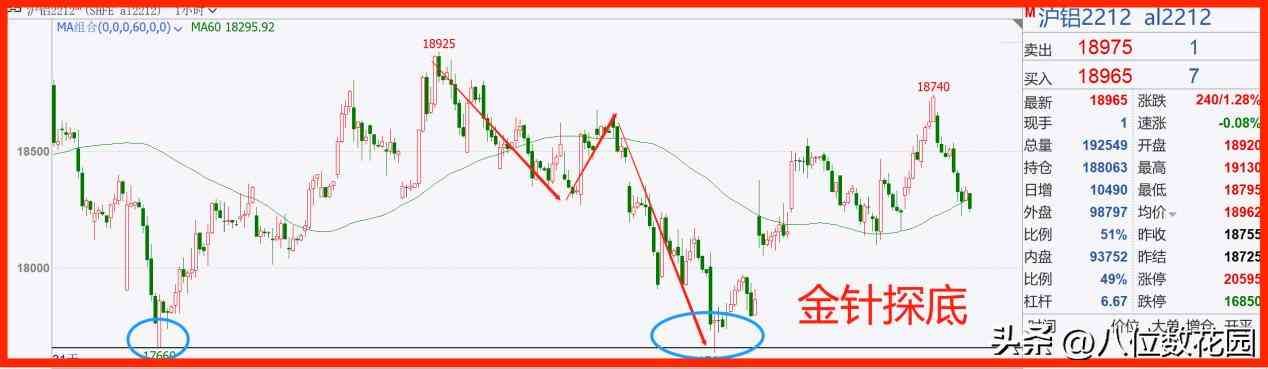 图中行情第二次测试到17660的支撑,形成了长下引线的金针探底形态,随后行情企稳,反转向上。