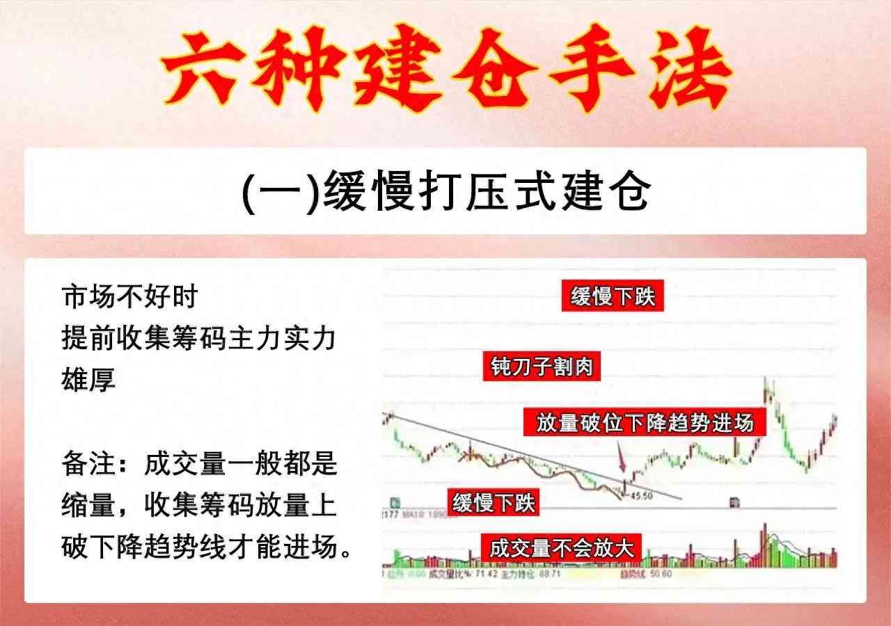 1、缓慢打压式建仓:这种比较适合资金体量大,喜欢根据下跌幅度的人建仓。