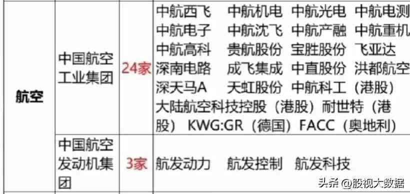 下辖A股上市公司19个:中航西飞、中航光电、中航电测、中航沈飞……(详细名单见文末配图)