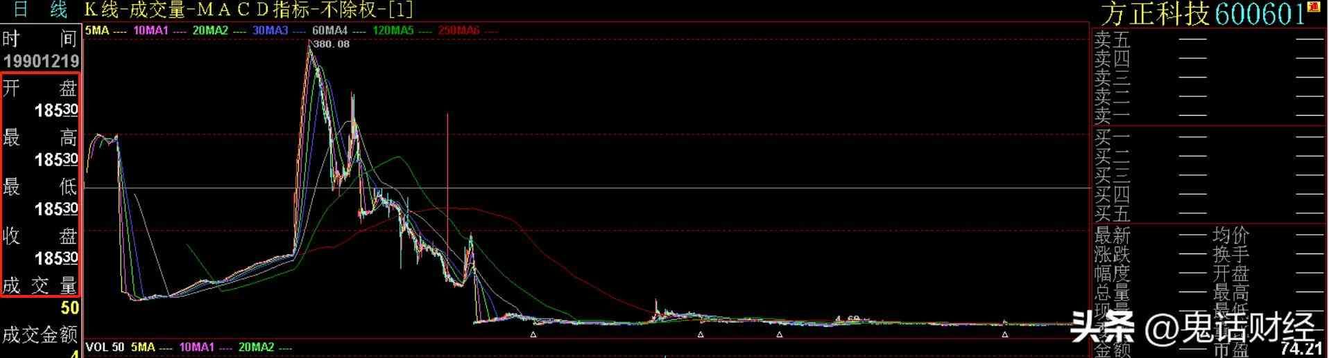 例如延中实业(现方正科技)当时的股本为1万股,每股面值10元,上市首日股价为185.3元,因此这个股票的总市值就是185.3*1万=1.853亿元。用这样的方法计算出来当时所有的8个股票总市值应该是23.82亿元。这个数字就是基日市值。