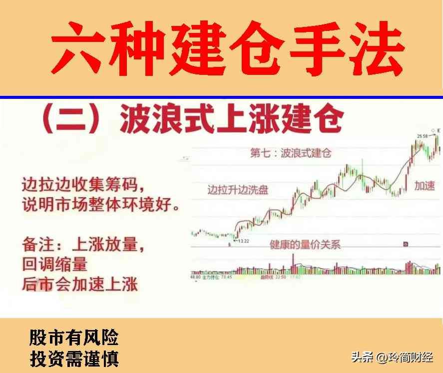第二,波浪式上涨建仓。在股票行情正处于上升趋势的时候,选择一些股票价格波动相对较小且前景较好的个股逐步建仓。