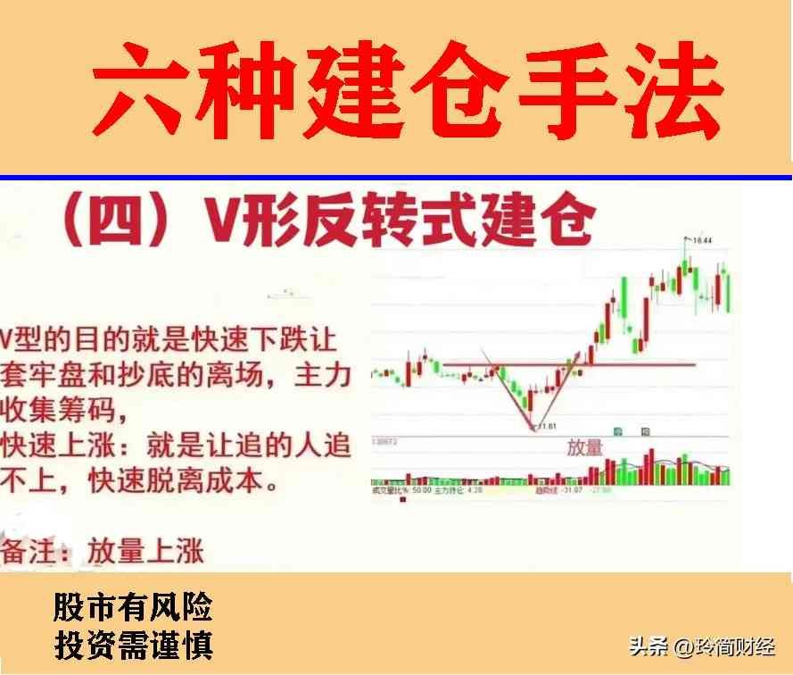 第四,V形反转式建仓。选择一些真正的龙头股,等到它们的股价出现过度下跌时,逐步加仓,等待股价的快速反弹,然后高位出局。