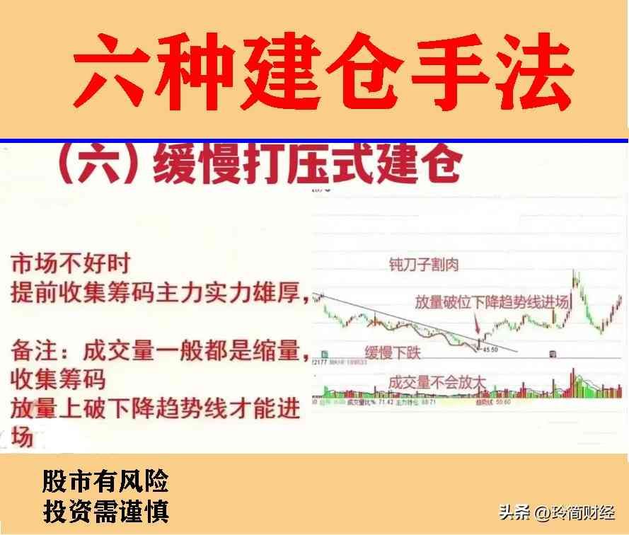 第六,缓慢打压式建仓。当市场出现连续下跌时,可以逐渐建立股票仓位,并在市场恢复时逐步加仓,以达到保本和轻松盈利的效果。
