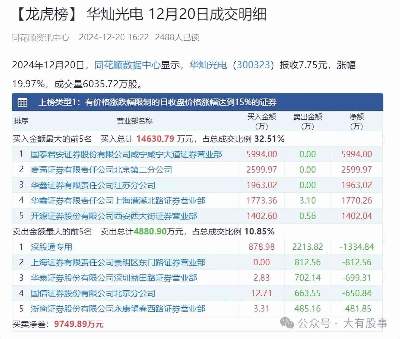 2、华灿光电(3323):20cm涨停;AI眼镜+虚拟现实+LED芯片+北京国资+低价