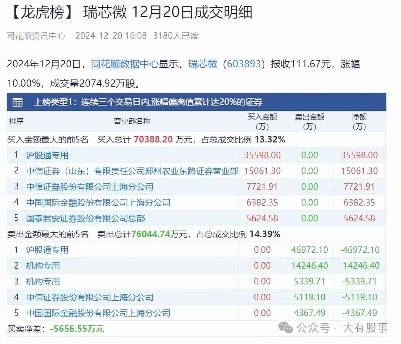 7、瑞芯微(603893):2连板+涨停;AI眼镜+SoC芯片+MCU芯片+人形机器人;
