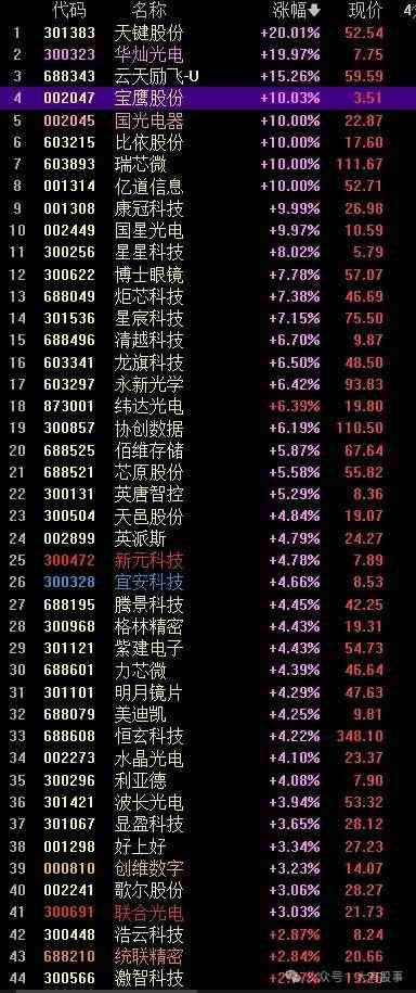 其他强势的AI眼镜概念股就不一一列举,有兴趣的可以参考下图去挖掘;
