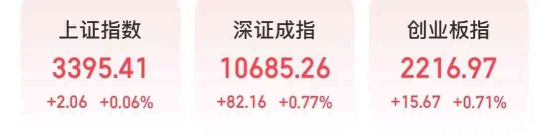 截至收盘,上证指数上涨0.06%,深证成指上涨0.77%,创业板指上涨0.71%。
