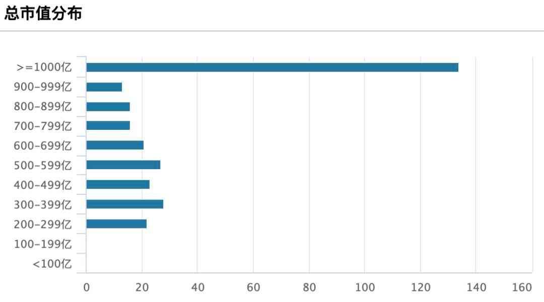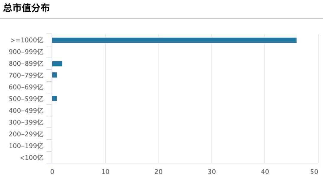 比如看上证50指数的市值分布,就是标准的大市值大盘股了: