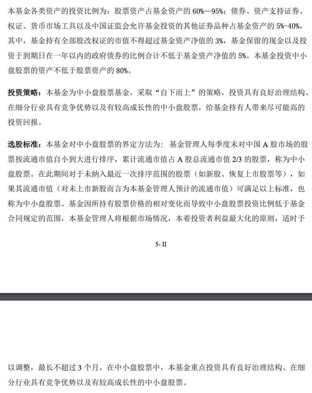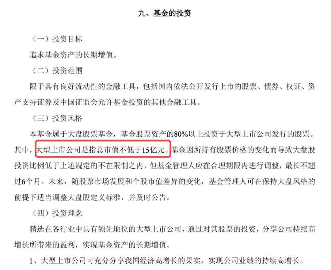 这个其实自由度很大,即便我买了不符合投资范围的股票,还可以有三个月调整期。而且根据合同,最多可以有19%的仓位能合理合法投资大盘股。
