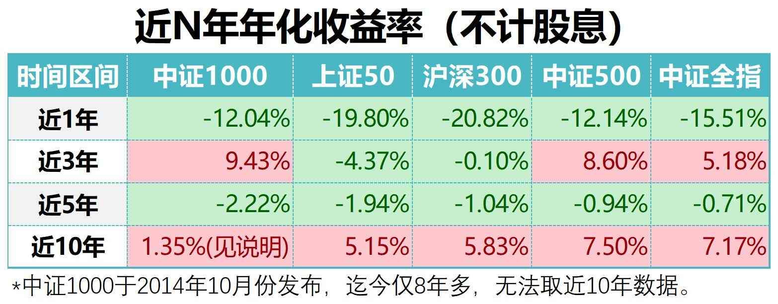 1、中证1于2014年10月份发布,所以无法取近10年数据与其它指数进行横向比较。如果我们看中证1发布8年多以来的数据,则它的平均年化收益仅1.35%,这个表现非常糟糕,也远低于其它几个指数,这可能和其发行时小盘股的起始点位偏高有关,未必就说明中证1的赚钱效应真的这么差。