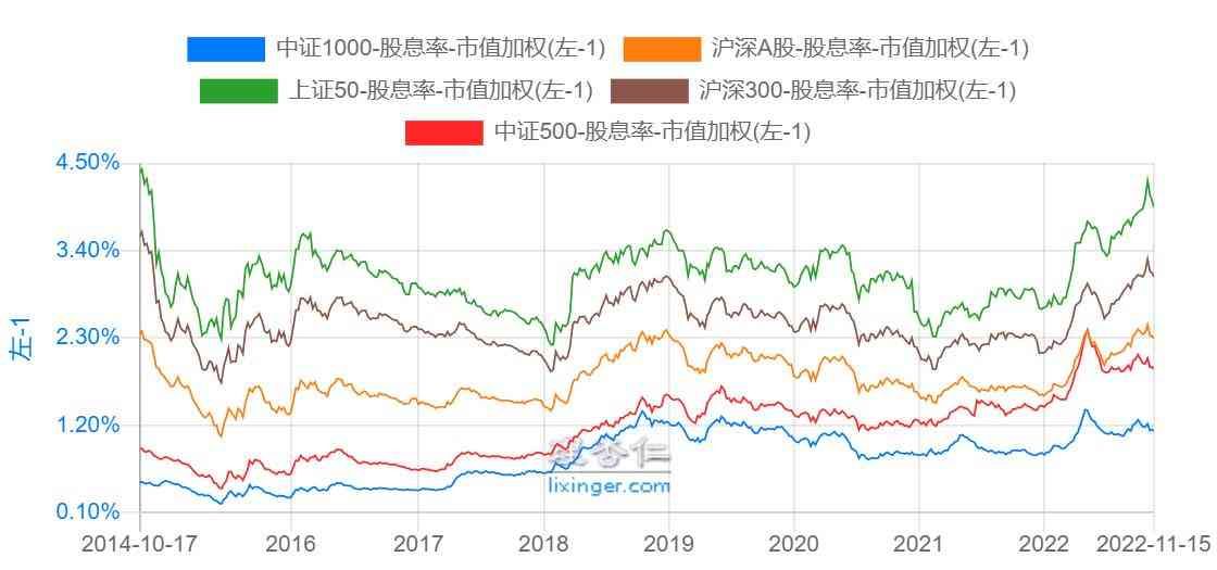 3、越是小盘股,股息率越低,所以看股息率的话,中证1<中证5<中证全指<沪深3<上证50。我们计算了下,中证1的股息率平均下来只有0.8%左右。