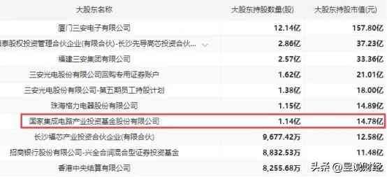 三安光电是LED龙头,是国内最大全色系超高亮度LED芯片生产企业,市值为629亿元。前十大股东中,国家大基金持有1.14亿股,持股比例高达2.28%,持股市值为14.78亿元。