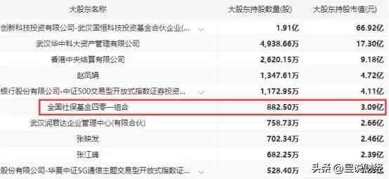 华工科技是国内量子通信与3D玻璃龙头,是武汉国资委旗下,以激光加工技术为重要支撑的智能制造企业,市值为339亿元。前十大股东中,社保基金持有882万股,持股比例高达0.88%,持股市值为3.09亿元。
