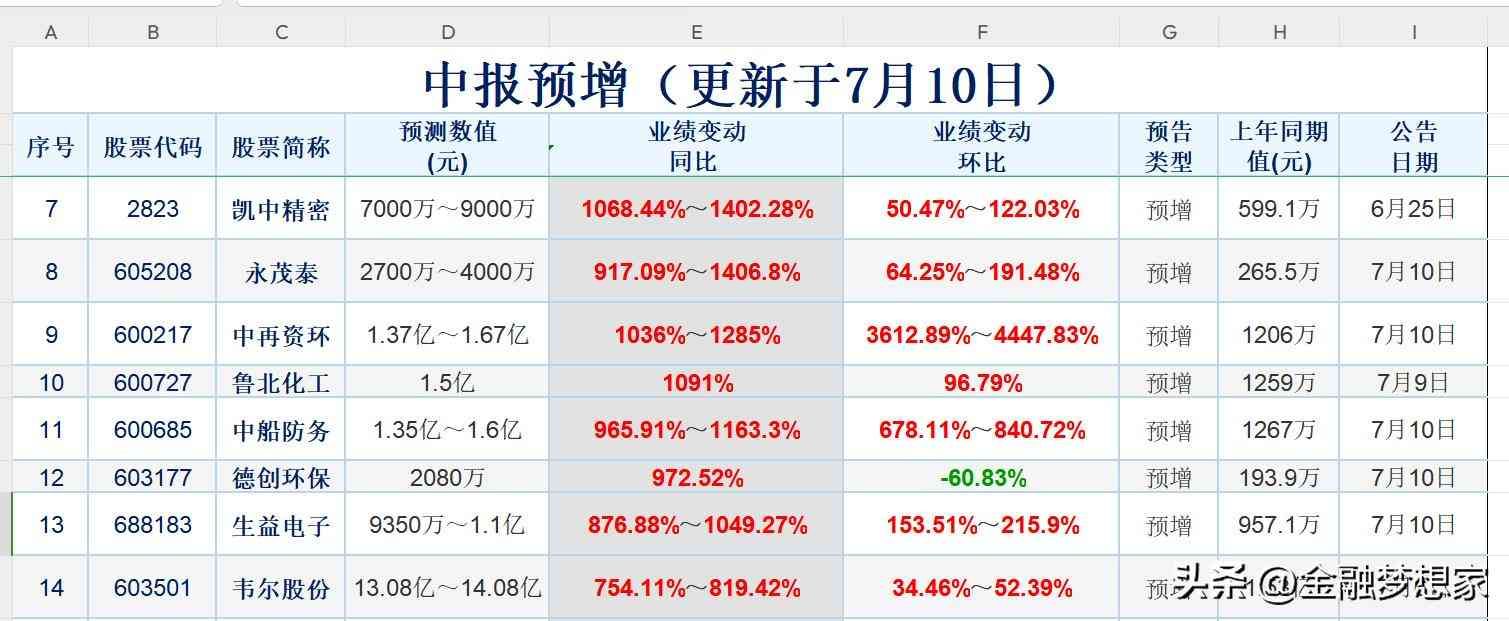 永东股份,永茂泰、凯中精密、中再资源、中船防务、鲁北化工、生益电子等公司预计净利润增幅上限都是在10倍以上。这些公司,基本上都是跳空,或者是涨停板!