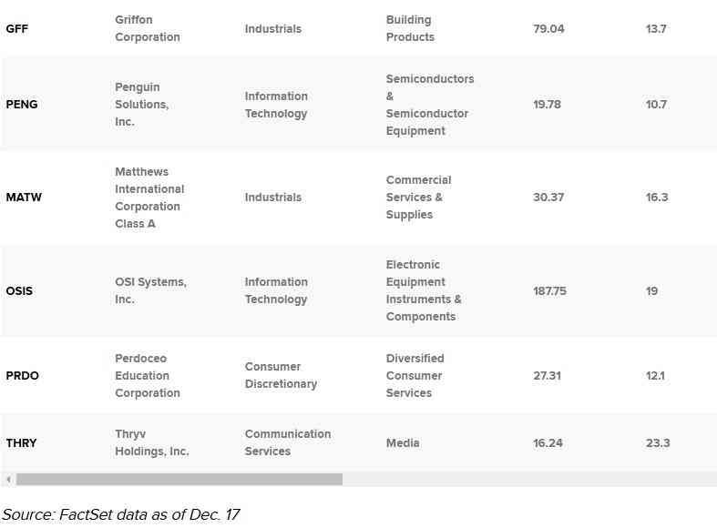 考虑到这一点,CNBC Pro根据以下标准筛选出了有望在未来一年上涨的小盘股: