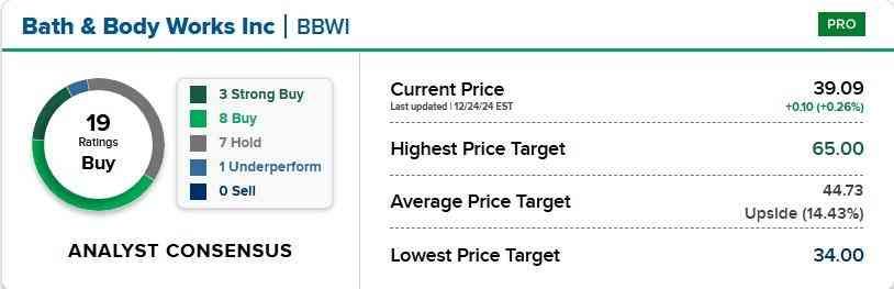 Bath & Body Works(BBWI)今年下跌超过9%。展望2025年,分析师认为该股有约20%的上涨潜力。事实上,TD Cowen最近将该股列为其2025年的最佳投资推荐之一,称其为“被低估的故事”。