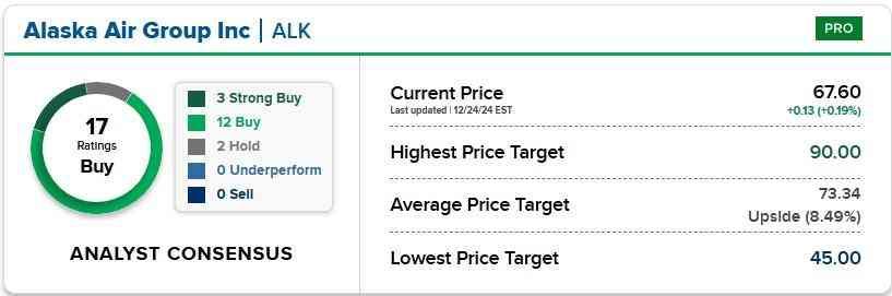 Alaska Airlines(ALK)今年上涨了73%,分析师认为该股有约16%的上涨潜力。Alaska Airlines被摩根士丹利列为明年的最佳航空股,分析师指出,9月Alaska Airlines以19亿美元收购夏威夷航空是其增长的催化剂。