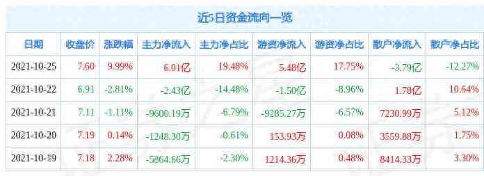 资金流向数据方面,当日主力资金净流入6.01亿元,游资资金净流入5.48亿元,散户资金净流出3.79亿元。近5日资金流向一览见下表:
