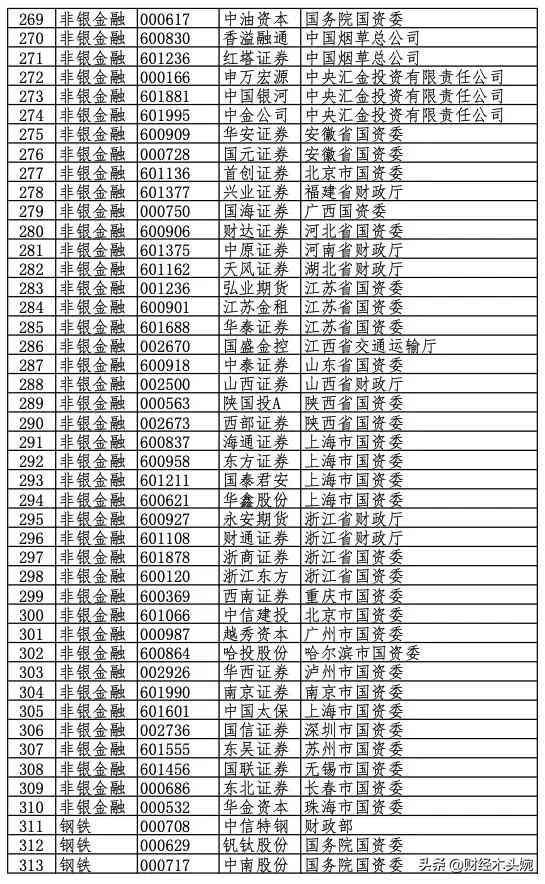 国资控股上市公司1419家,其中非银行金融行业59家,包括券商、期货、保险等等。(下图252—310)