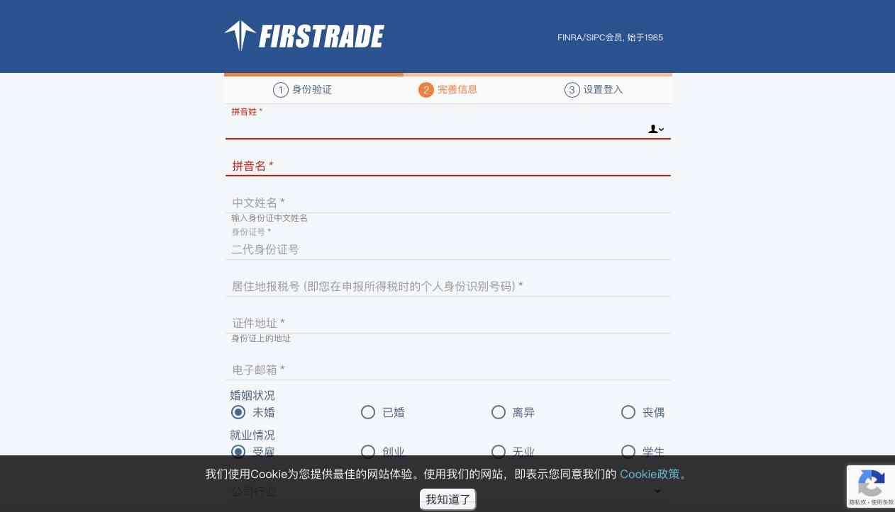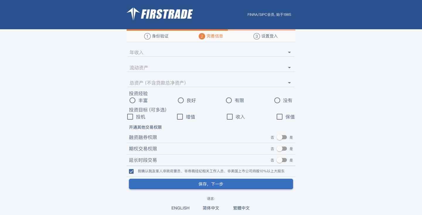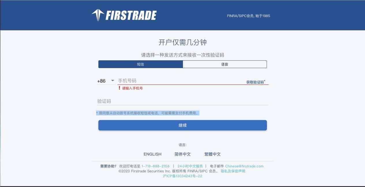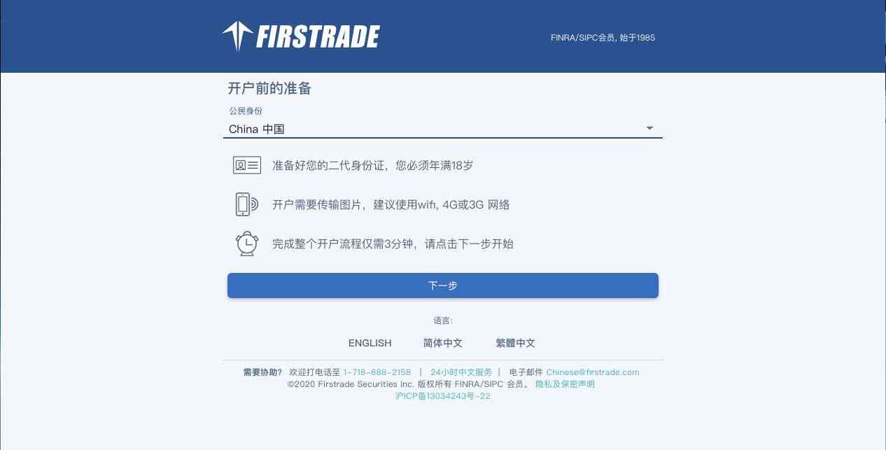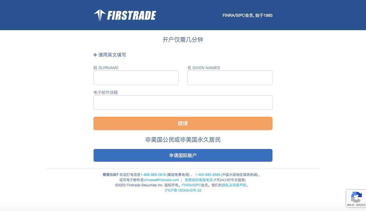 1. 登陆第一证券的网站的中文开户页面https://signup.firstrade.cn/apply/zh-cn/