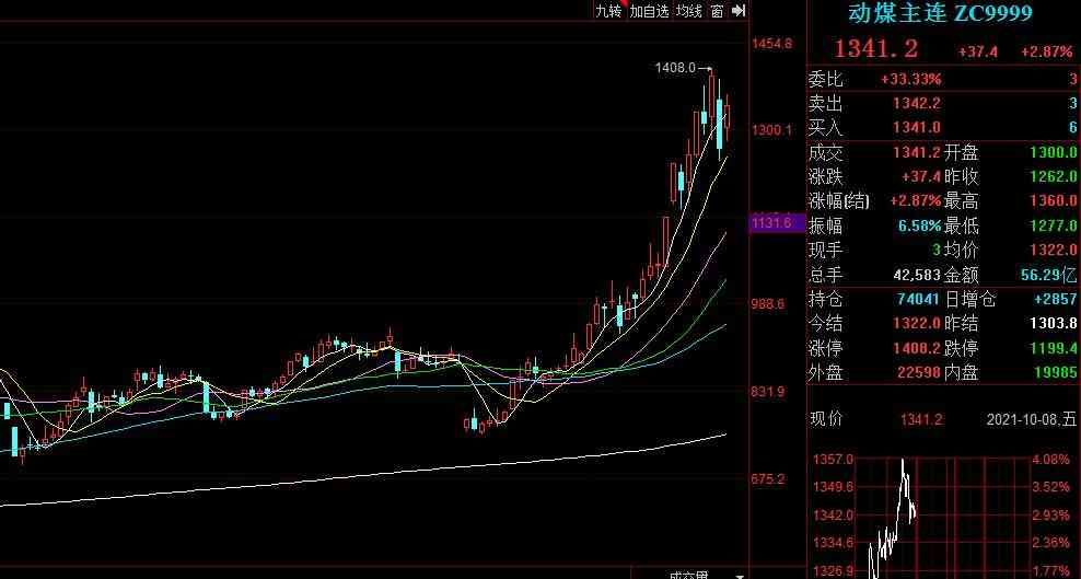 其实国内的情况也差不多,同样是供给减少和需求增加所致!从目前的状况来看,即便有各方面的政策调控,想要快速扭转能源紧缺局面的难度还是非常大的。这点可以从几个主要煤炭期货的价格走势上看出来。此前政策面多次压制煤炭涨价,但在强需求支撑下,动力煤和焦煤价格都在最近几个交易日创出了新高!