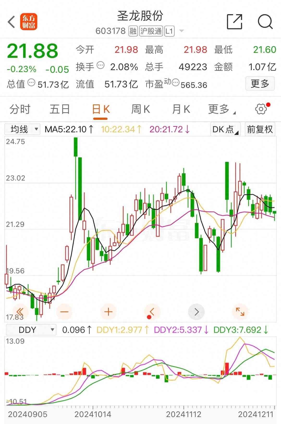 (1.)圣龙股份(603178),汽车零部件,今天股票价格:21.88元/股,涨幅:-0.23 %;今年以来涨幅:-52.72 %。