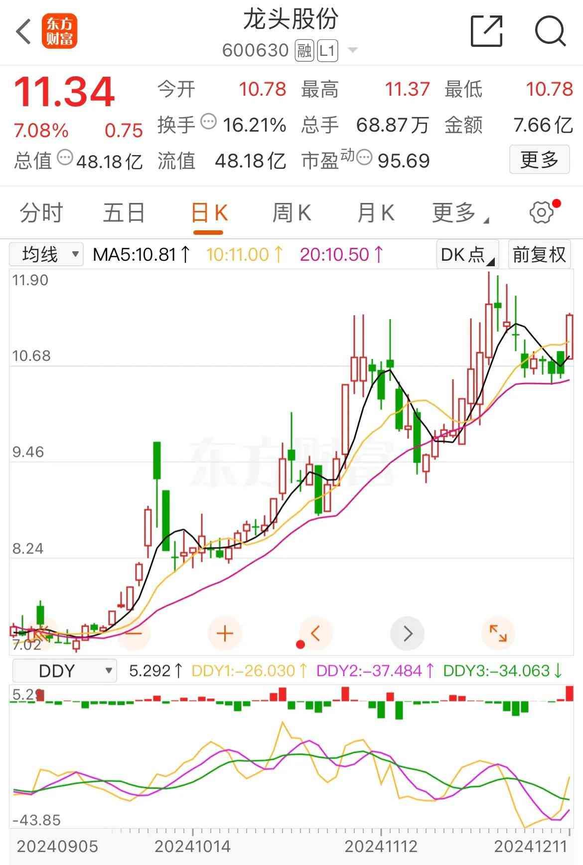 600630龙头股份股票行情,去年的龙字辈,今天表现如何?