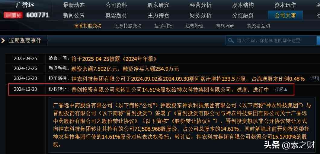 并购标的名称:广誉远中药股份有限公司14.61%股权