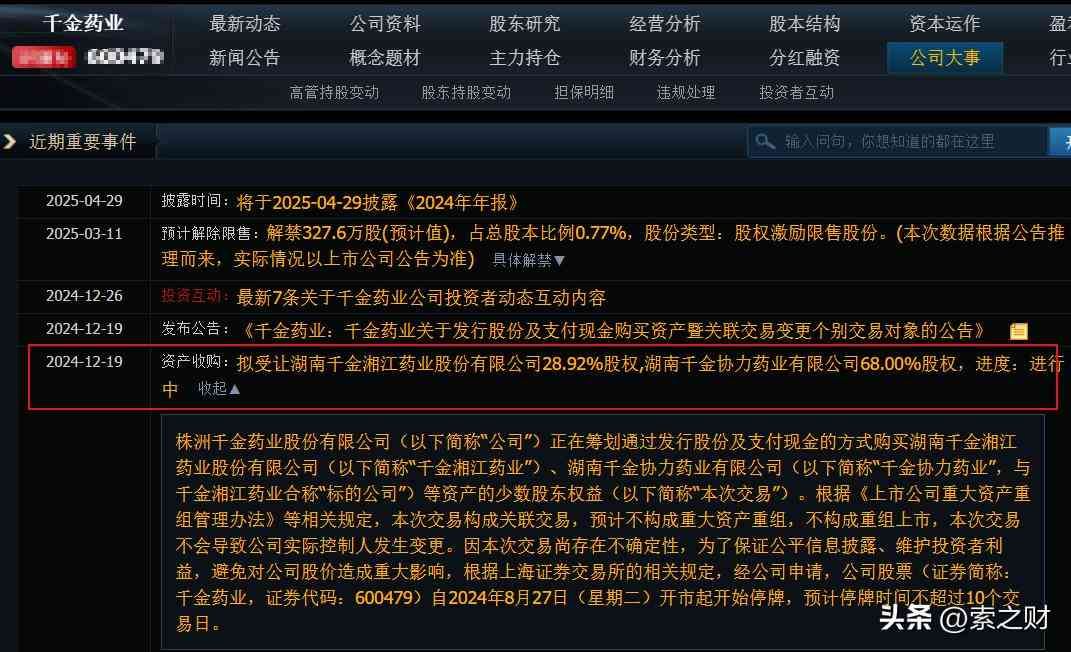 并购标的名称:湖南千金湘江药业股份有限公司28.92%股权,湖南千金协力药业有限公司68.%股权